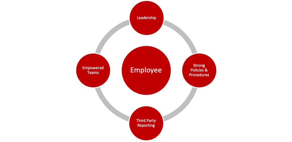 When I work with these organizations, I focus on what it takes to build a culture of safety at work and in particular, on four key factors that I believe need to be in place for employees to feel safe at work: invested and engaged leadership; strong policies and procedures; a strong and secure third-party reporting system; and finally, teams that are empowered to report and react (also known as by-stander intervention training).